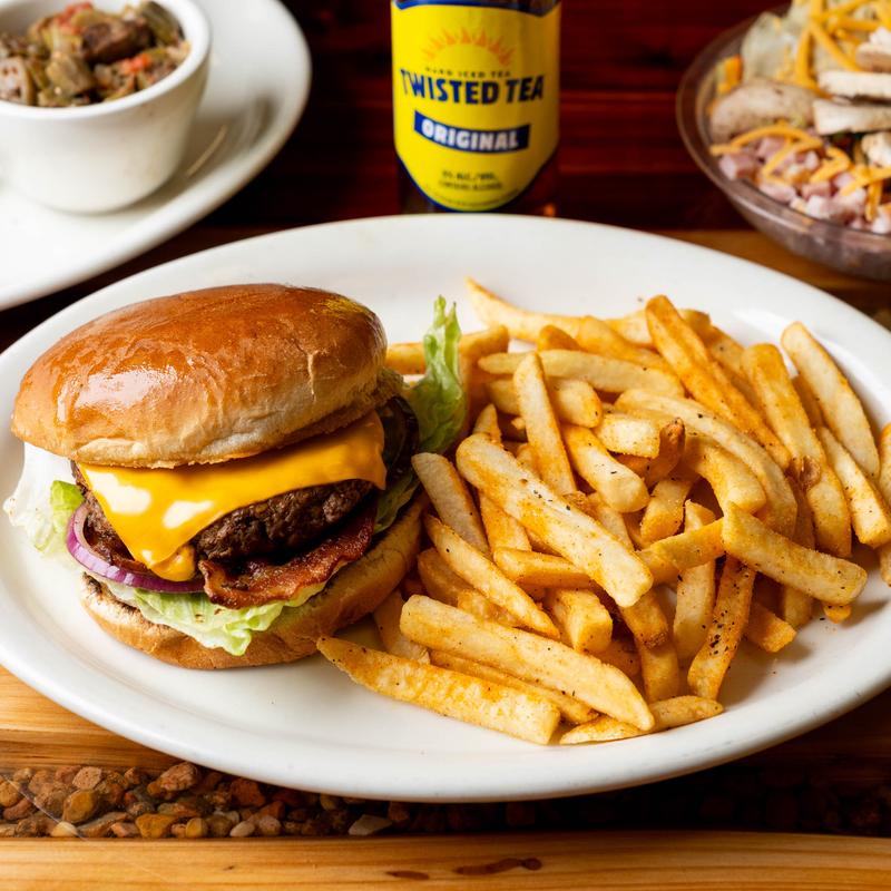6oz $8.00 | 8oz $11.00 • Includes lettuce, tomato, pickle, onion • Add Mushrooms, Bacon, Jalapeno, Grilled Onions, or Cheese +$1.00 each